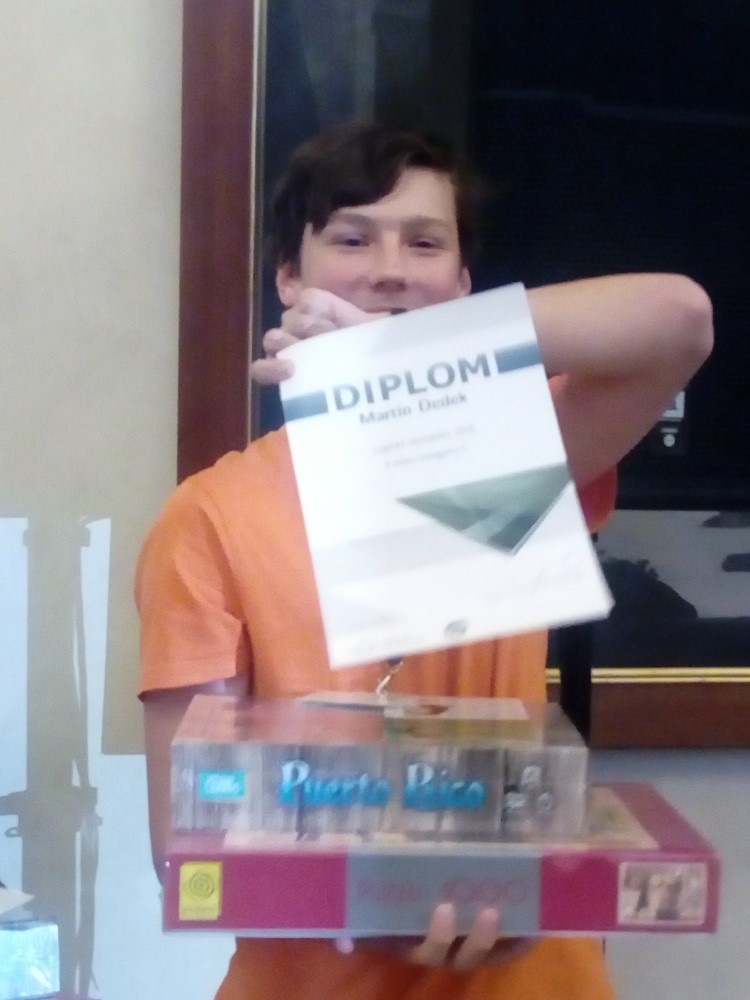 Petr obsadil konečné 6. místo a Vojta 7. místo. Celkem se MČR zúčastnilo 74 mladých šachistů. Kdyby Vojta v posledním kole vyhrál, tak by byl dokonce na prvním místě. Oba si zaslouží pochvalu, úspěch je to skvělý, konkurence v šachách je obrovská. Už teď se těšíme na mistrovství školních týmů, kde oba borci budou tvořit základ našeho družstva pro nižší stupeň.