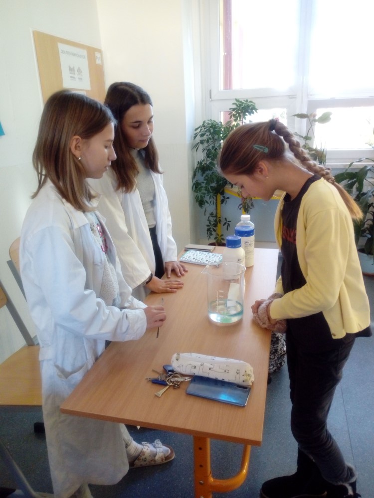 A konečně v poslední laboratoři se studenti přenesli do doby Rudolfa II. a zkusili přijít na to, jak by se dal odhalit takový otrávený pohár. V praxi tak mohli vidět optické biosenzory, zařízení, která jsou schopná odhalit hledanou látku (např. jed) rychle, přímo na místě a s vysokou citlivostí. V průběhu celého „fyzikálního“ odpoledne studenti odpovídali na všetečné otázky vědců a zapojovali se do různých pokusů. Pracovníci ÚFE byli mile překvapeni znalostmi našich studentů. Naše škola se těší na další spolupráci s tímto ústavem.